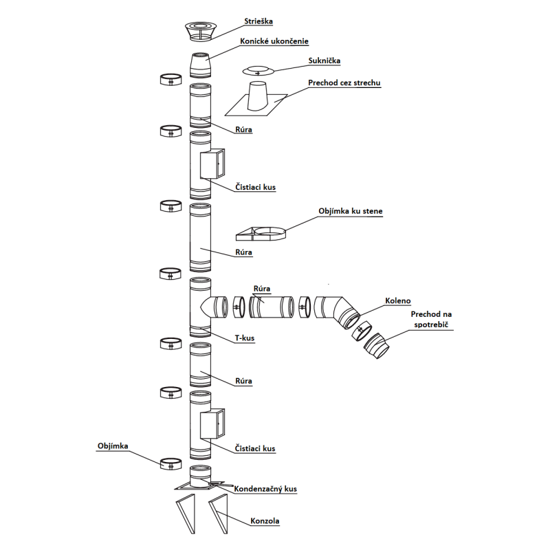 - spojovacie objímky ( potrebný počet podľa výšky komína)