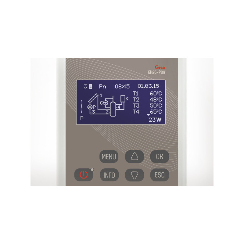 Regulátor GH26 má jednu z najširších škál funkcií na trhu a schopnosť spolupracovať s takmer akýmkoľvek typom solárnej inštalácie. To umožňuje okrem iného na solárnu podporu ústredného vykurovania pre spoluprácu s vykurovacím kotlom.